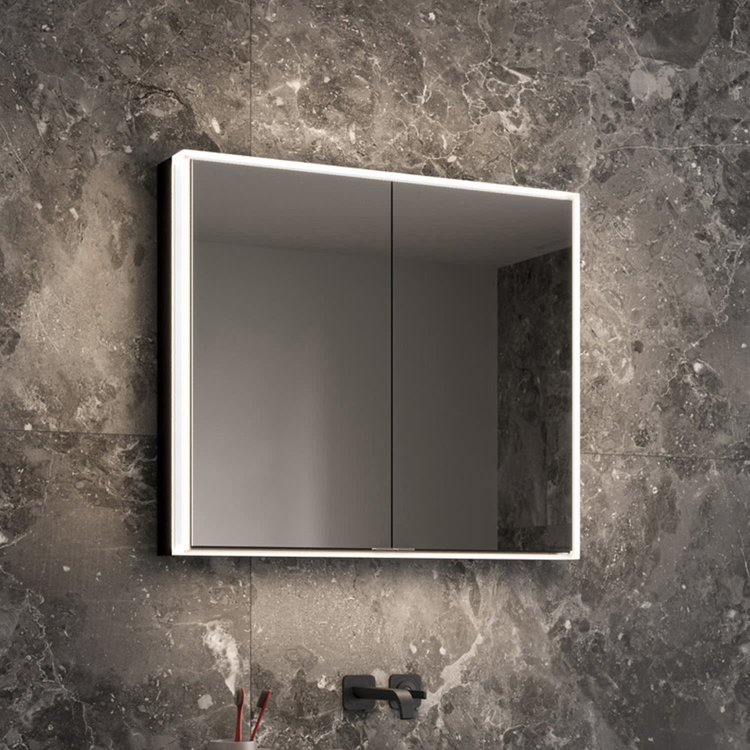 Schneider GLOW classic HCL Spiegelschrank PLU1 80/2/HCL 82,5 x 73,1 cm mit 2 Steckdosen, DE, Badmöbel, schwarz matt