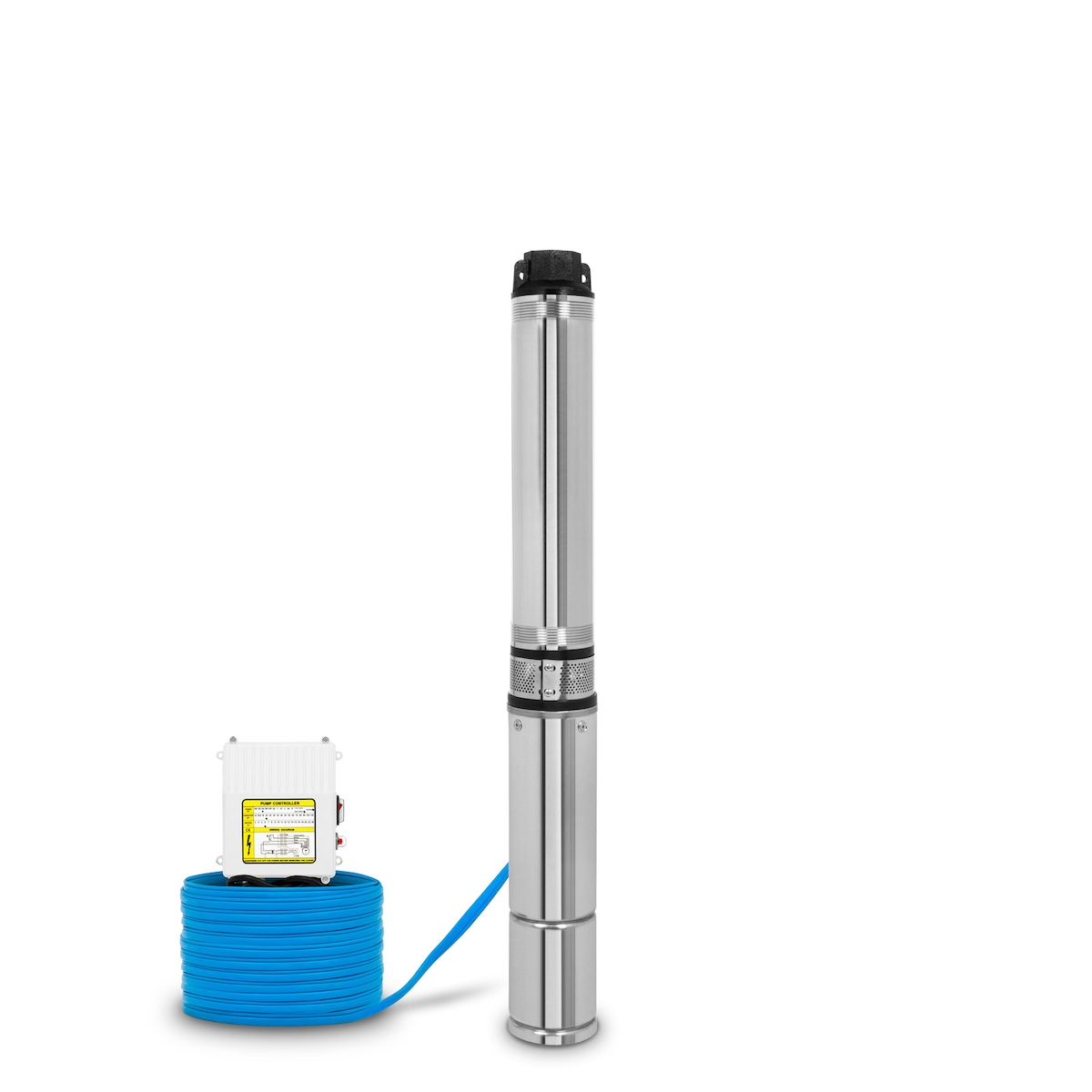 EBERTH 4" Tiefbrunnenpumpe aus Edelstahl, 550W, 1 1/2" Anschluss, 20m Kabel, max. Förderhöhe 43m, mit Schmutzsieb