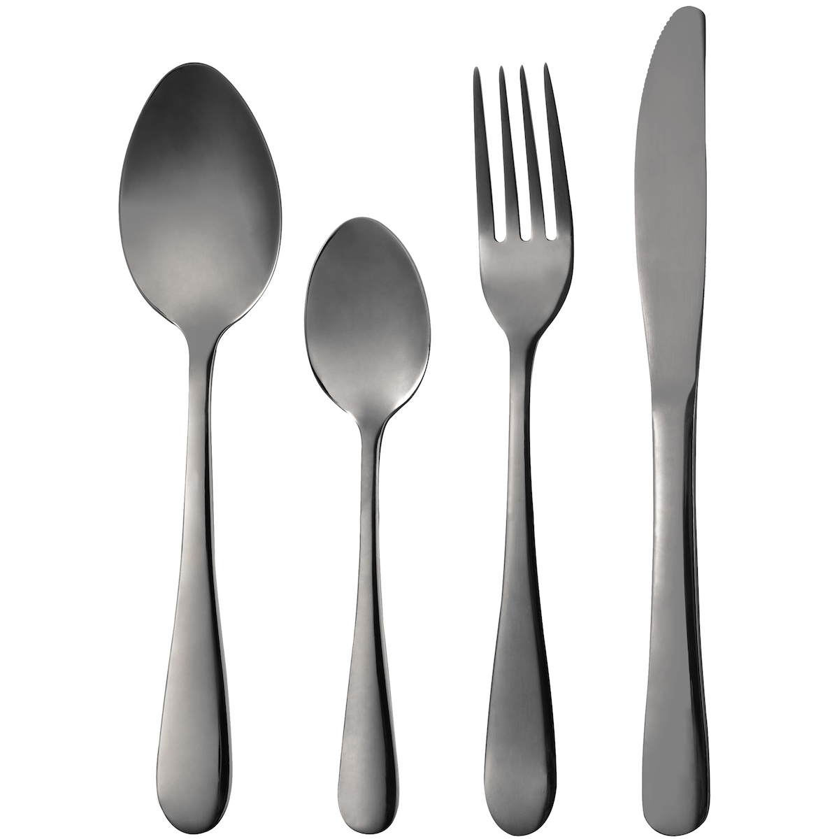 Besteckset Felicity, Schwarzes Besteck, 24-teilig, Für 6 Personen, 18/0 Edelstahl, 13/0 Klingenstahl, Gehämmerter Griff, Mit Messer, Gabel, Löff...