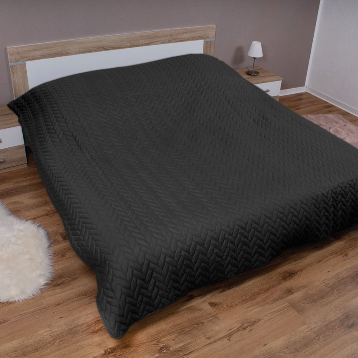 Bestlivings Bett- und Sofaüberwurf - Tagesdecke - 220cm x 240cm - Schwarz