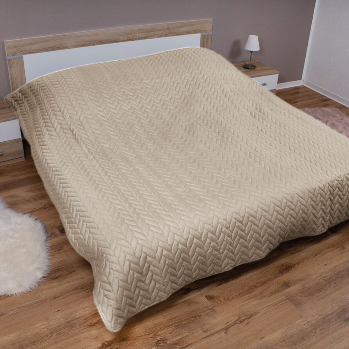 Bestlivings Bett- und Sofaüberwurf - Tagesdecke - 220cm x 240cm - Beige