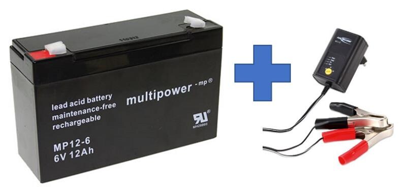 Multipower BLEI AKKU BATTERIE kompatibel 3-FM-10 20HR 3 FM 10 3FM10 6V 12Ah 13Ah GEL+Lader