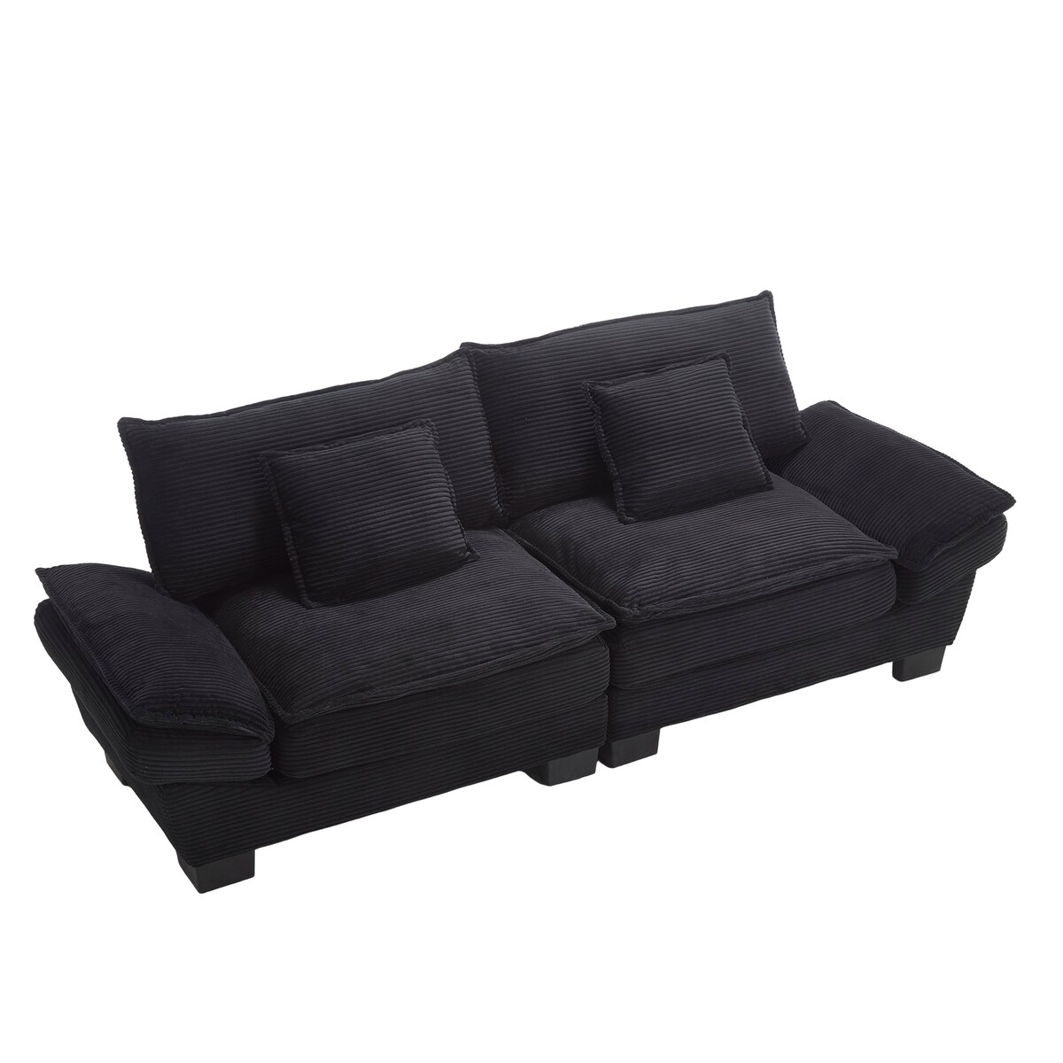 3-Sitzer Sofa Samt ultratief Massivholzrahmen gepolsterte Armlehnen stabile Kunststofffüße 220x80 Kissen Wohnzimmer Sofa Schwarz