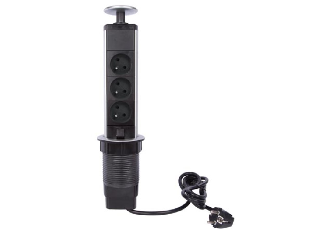 Einbausteckdose - Versenkbare Tischsteckdose - 220V - 3 Steckdosen - Aluminiumlegierung - Für Küche/Arbeitsplatte - Schwarz