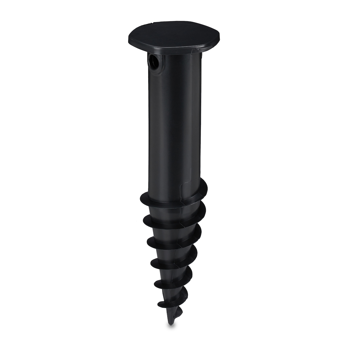 Relaxdays Bodenhülse Sonnenschirm, Bodendübel zum Eindrehen, Adapter, 32-50 mm, Kunststoff, Sonnenschirm Bohrer, schwarz