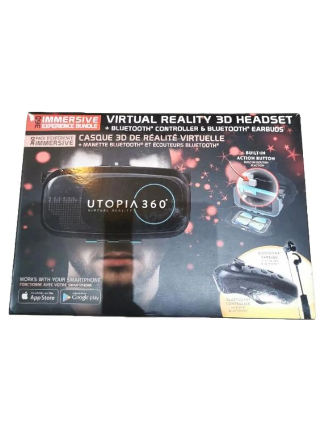 KORETRAK ReTrak Utopia 360 VR Brille 3D Headset Bluetooth Controller Earbuds Schwarz