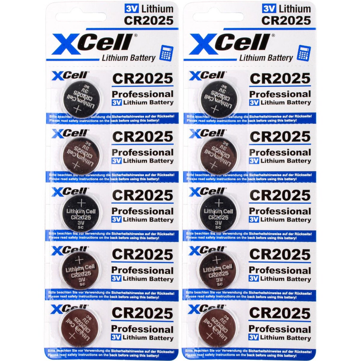 XCell 10x CR2025 Lithium-Knopfzelle 3V / 170mAh (2x 5er Pack)