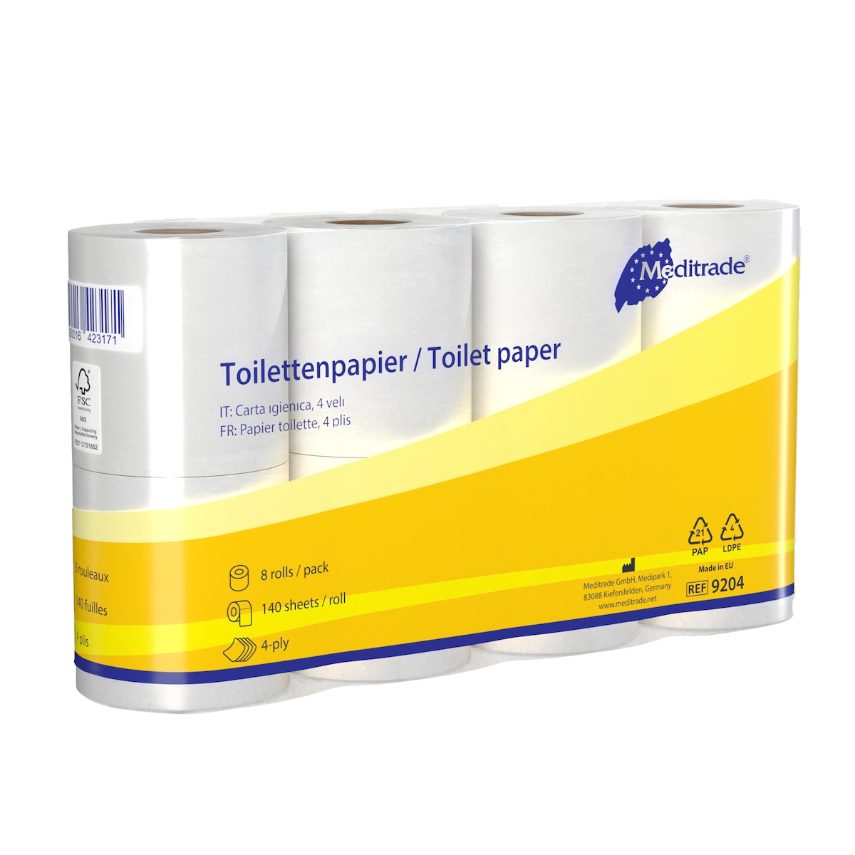 Toilettenpapier FSC Zertifiziert 150 Blatt 4 lagig, 8 Rollen je Pack