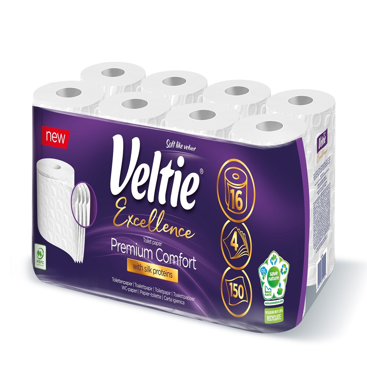 Toilettenpapier VELTIE – 16er Pack – 4-lagig – 150 Blatt – Weiß