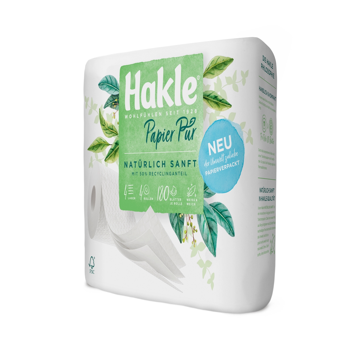 Hakle Toilettenpapier Papier Pur (4-lagig, 4 extra ergiebige Rollen)