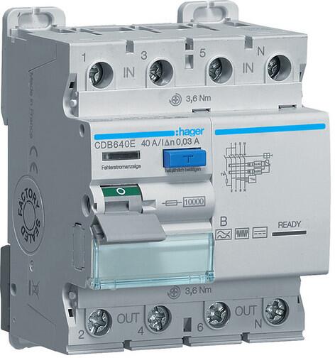 Hager CFB640D Fehlerstromschutzschalter, FI-Schalter 4 polig 10kA 40A 300mA Typ B+