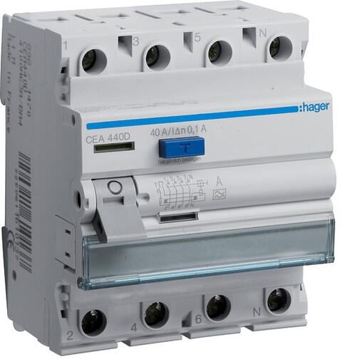 Hager CEA440D Fehlerstromschutzschalter, FI-Schalter 4 polig 6kA 40A 100mA Typ A