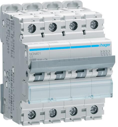 Hager NCN401 Leitungsschutzschalter 4 polig 10kA/15kA C-1A 4M