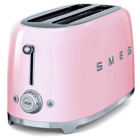 SMEG Edelstahl Toaster 4 Scheiben 6 Modi, Hochglanz, Auftaufunkton, 4 kurze Schlitze, für 4 Scheiben, 2000,00 W, Auftauen, Rösten, Stopp - Pink