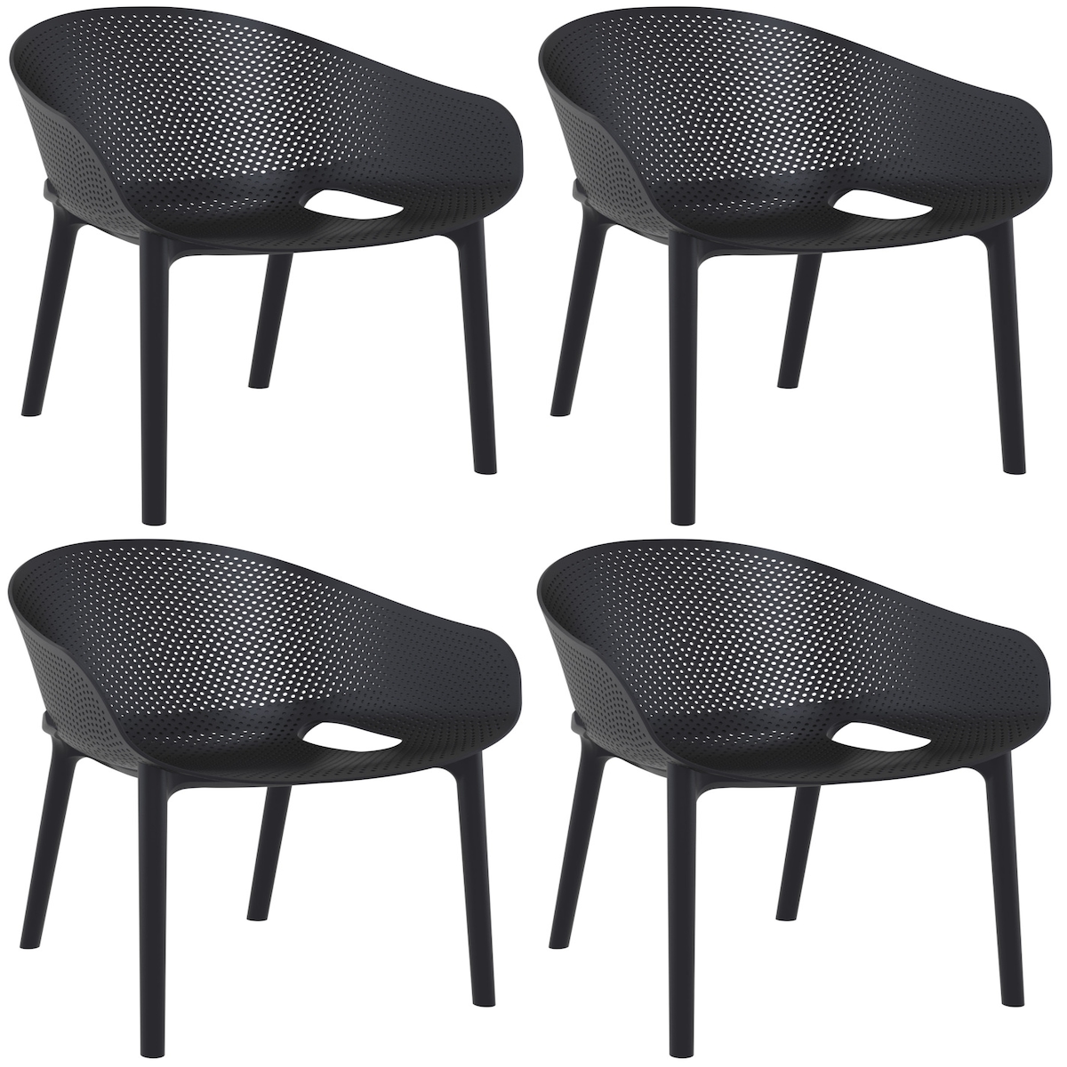 4er Set Stühle mit abgerundetem Design mit Gittermuster - Schwarz