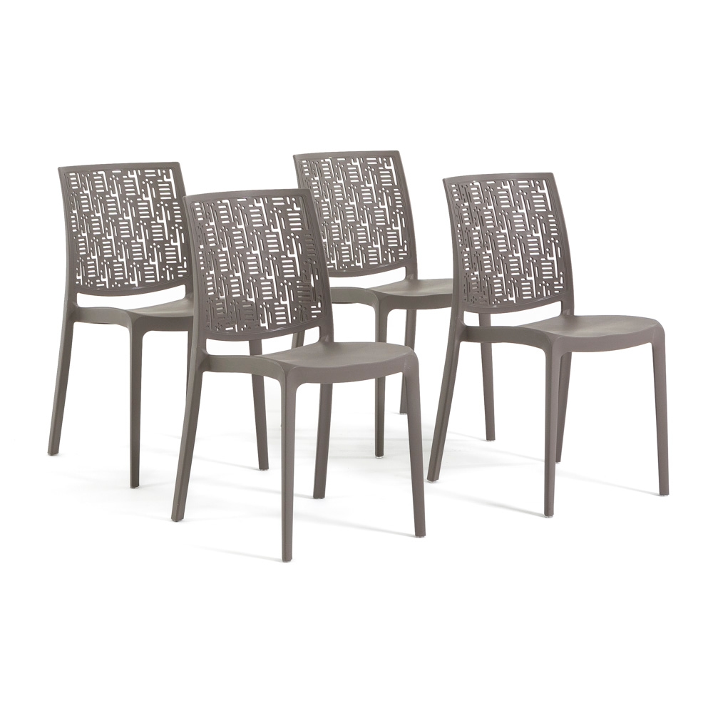 4er-Set stapelbare Stühle aus Polypropylen mit Glasfasern für Garten oder Innenbereich, wasserabweisend und widerstandsfähig - MARIA - Taubengrau