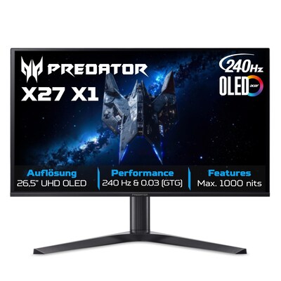 Acer Predator X27X1bmiippruzx 26.5 Zoll 4K (UHD) QD-OLED 240 Hz Gaming Monitor 16:9 DP/HDMI/USB-C PD65W