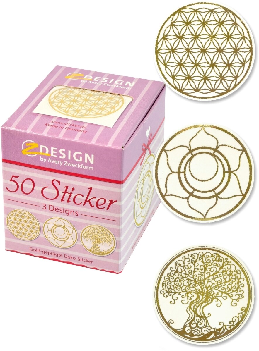 Z-Design Sticker auf Rolle Motiv Lebensblume,-baum rund 38mm 3 Motive 50 Stück
