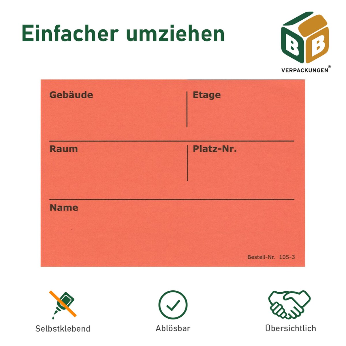 BB-Verpackungen GmbH 50 x Umzugsetiketten (105 x 75 mm) rot selbstklebend Rückstandlos ablösbar Kartonaufkleber Sticker Umzugsaufkleber beschriften BB