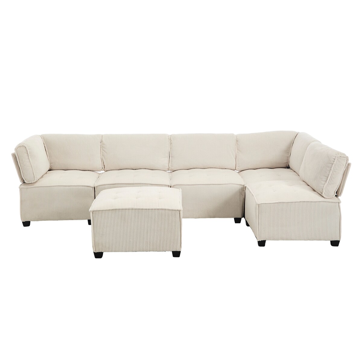 Modulares 6-Sitzer-Sofa 308x154 cm aus Cordstoff mit Stauraum – Ergonomisches Design in Beige, Anpassbar als U- oder L-Form, Robuste Struktur