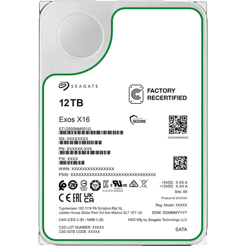 Seagate Exos X16 12 TB Generalüberholt Festplatte, SATA 6 Gb/s, 3,5", Generalüberholt