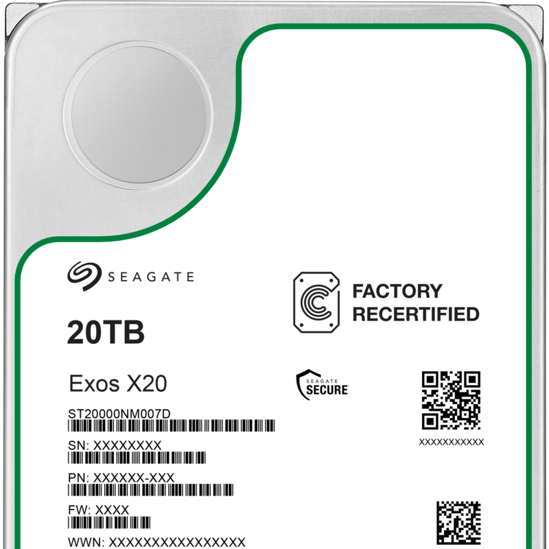 Seagate Exos X20 20 TB Generalüberholt Festplatte, SATA 6 Gb/s, 3,5", Generalüberholt