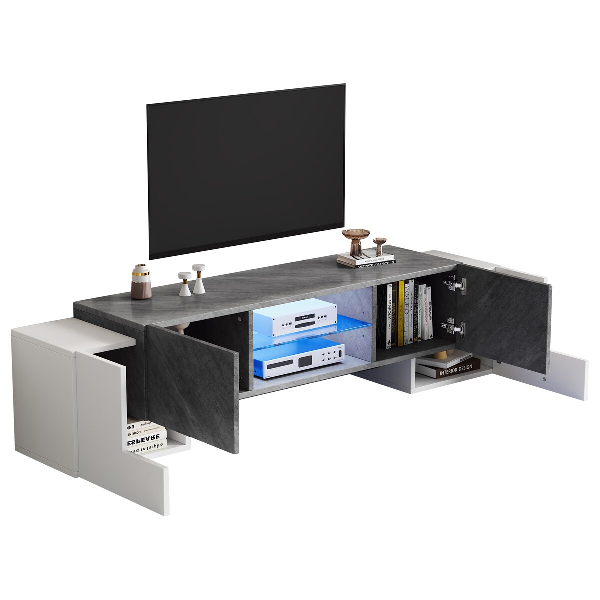 TV-Schrank 180x40x46 mit Bluetooth-LED, Weiß und Grau, für 60-70 Zoll Fernseher, 4 Schränke, MDF, verstellbare Trennwand