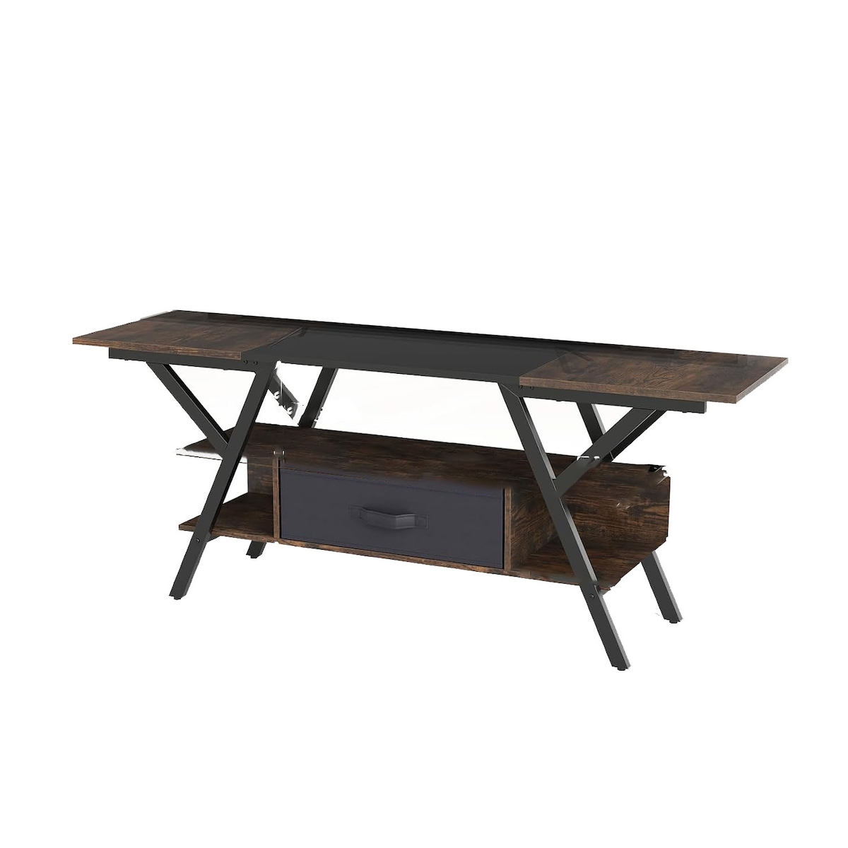 KOMFOTTEU Konsolentisch aus gehärtetem Glas, Eingangtisch Flurtisch 3 Ebenen, TV Regal 140 x 41 x 82 cm, Fernsehentisch für Fernseher bis 65 Zoll