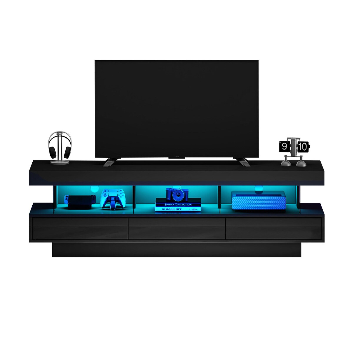 STILVORA TV-Schrank mit 3 Glasablagen, LED-Beleuchtung, App-Steuerung, Bluetooth-Konnektivität für 70-Zoll-Fernseher, Hochglanz