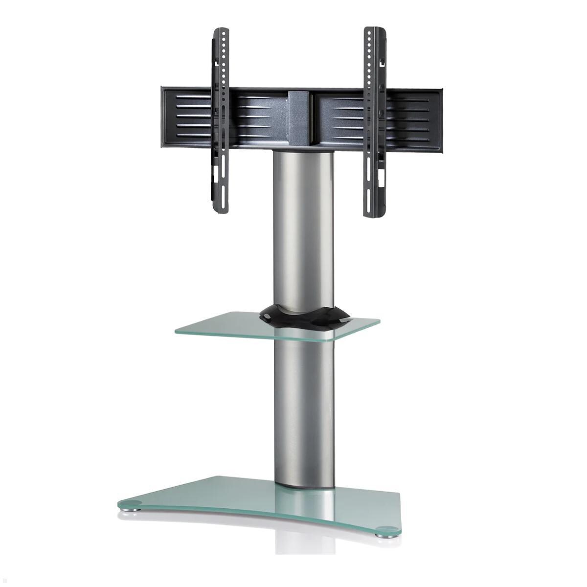 VCM Zental TV Standfuß mit Ablage bis 70 Zoll, Mattglas, silber
