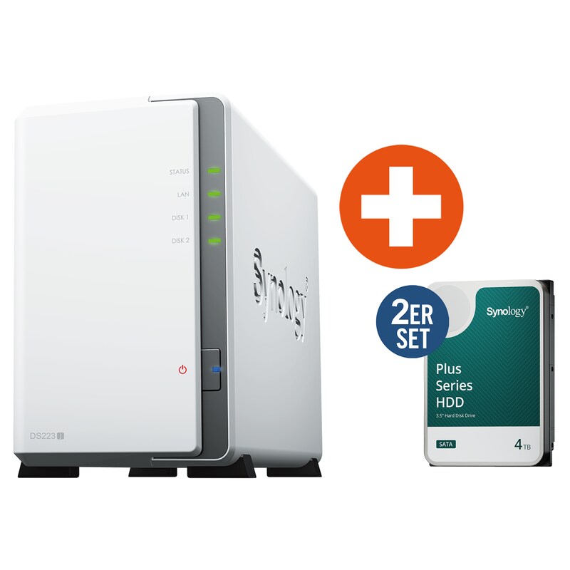 Synology DS223j NAS System 2-Bay 8 TB inkl. 2x 4 TB Synology HDD HAT3300-4T