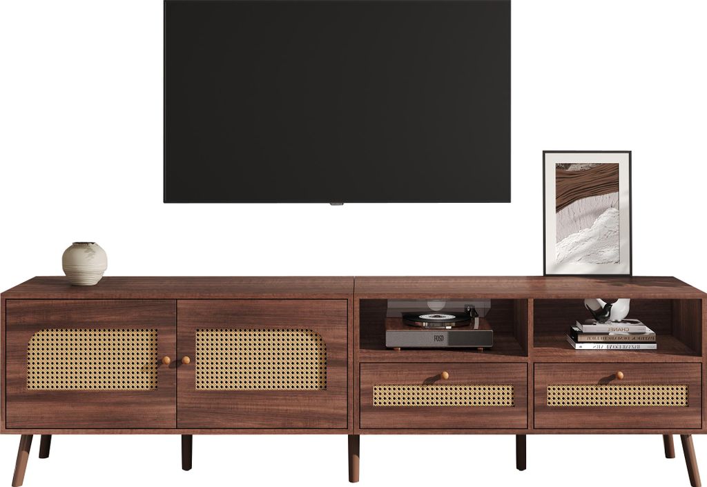 Merax TV-Schrank 200 cm für 80-Zoll Fernseher, Lowboard mit Rattantüren, 2 Schubladen, 8 Beine, modernes Design, Braun
