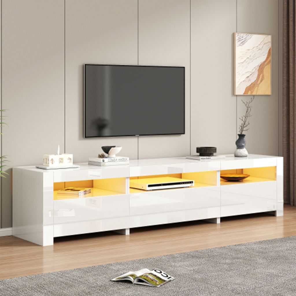 MODFU TV Lowboard Fernsehunterschrank Led Beleuchtung und Stauraum,TV-Schrank mit 3 Schranktüren,geeignet für 80-Zoll-Fernseher Weiß