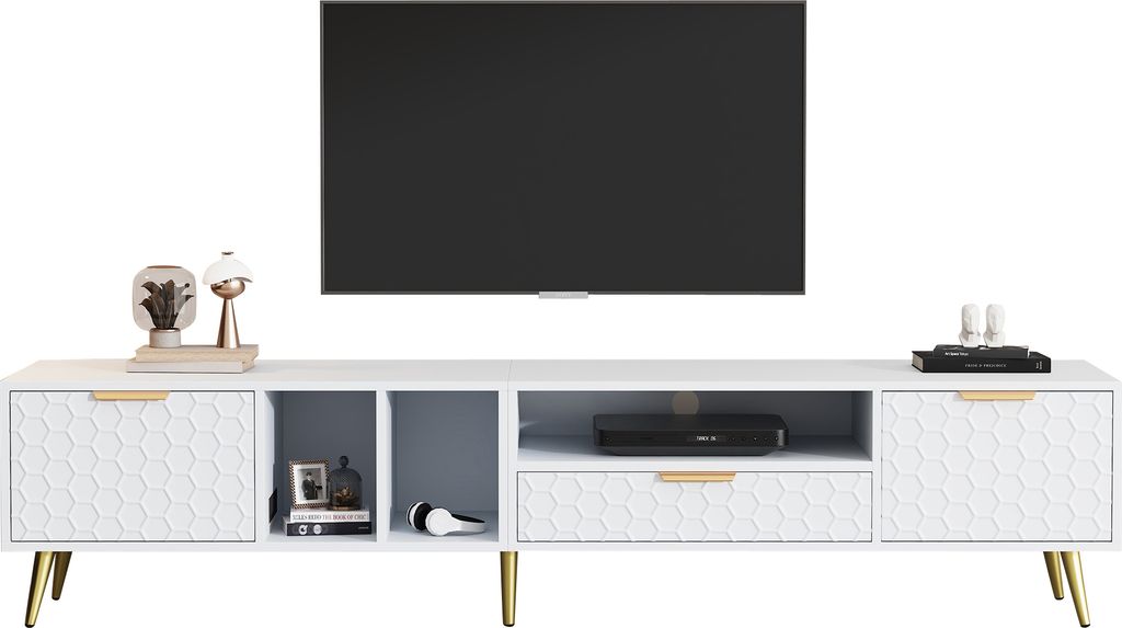 Moderner r TV-Ständer(180*40*41cm) mit mattem Wabenmuster mit mehreren Aufbewahrungsfunktionen für Fernseher bis zu 80 Zoll