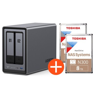 UGREEN NASync DH2300 NAS System 2-Bay 16TB inkl. 2x Toshiba NAS HDD N300 – 8TB
