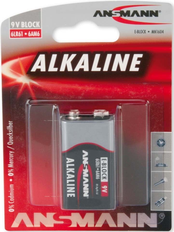 Ansmann Alkaline 9V Batterie, Block E, 6LR61, 1er Papierblister