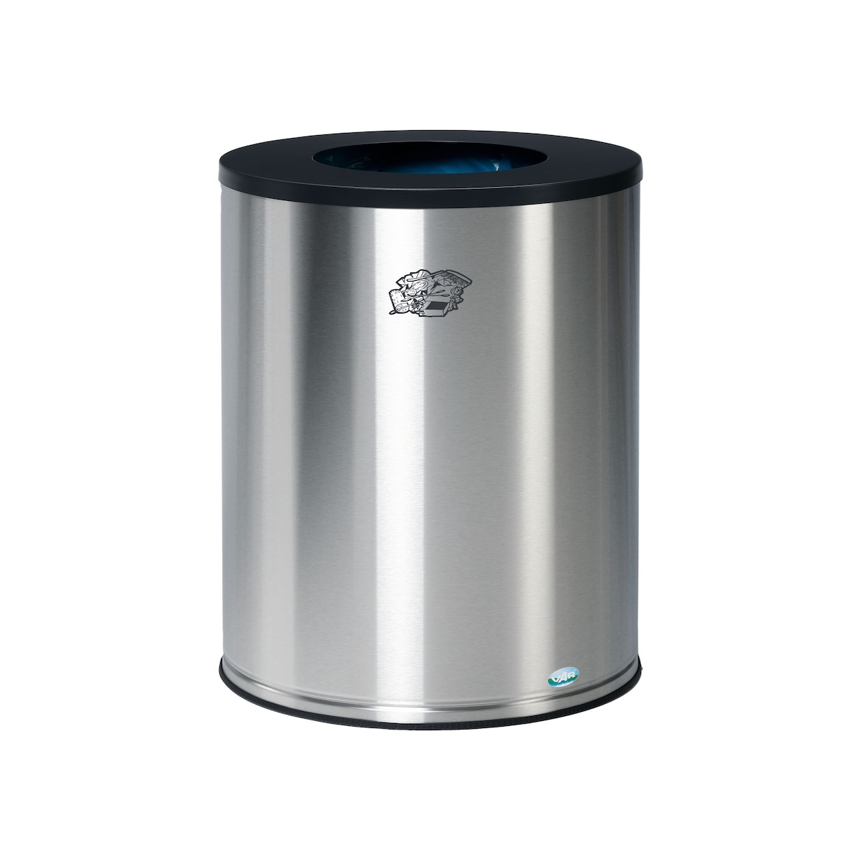 WAS Germany - Abfalleimer mit Schwingdeckel, 80 ltr., Ø 37 cm, Chromnickelstahl