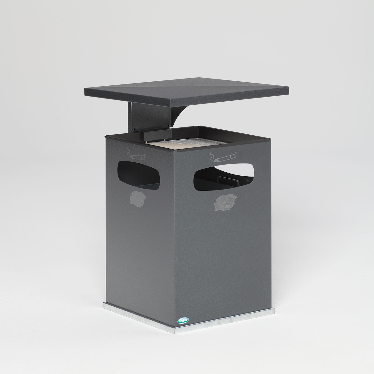 PROREGAL Kombiascher mit verstärktem Schutzdach | 38 Liter, HxBxT 91x39,5x39,5cm | Verzinkter Stahl | Grau | Mülleimer Aschenbecher Abfalleimer