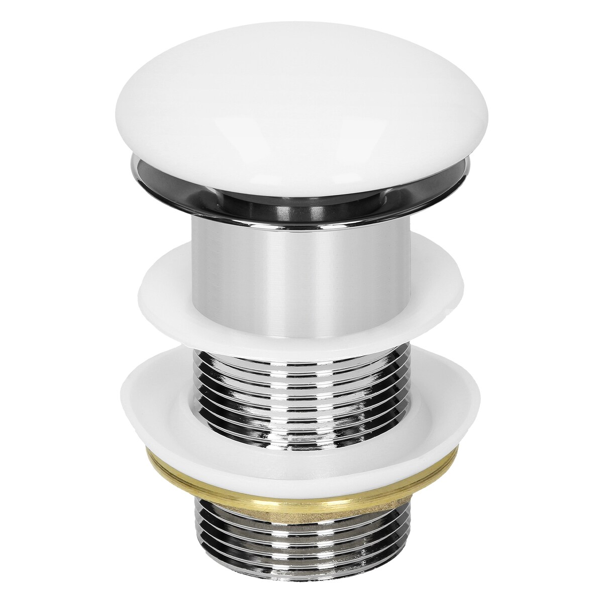 LuxeBath ML-Design Universal Ablaufgarnitur 1 1/4" ohne Überlauf – Pop-Up, Keramikdeckel Weiß/Edelstahl, inkl. Dichtungen