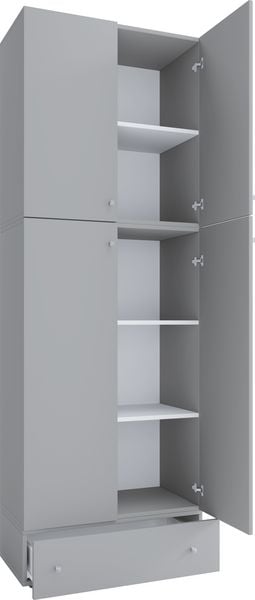 Vladon Büroschrank Logan V1, Germany, Aktenschrank mit 5 Fächern und 4 Türen, Weiß matt/Hellgrau Seidenmatt (82 x 185 x 37 cm)