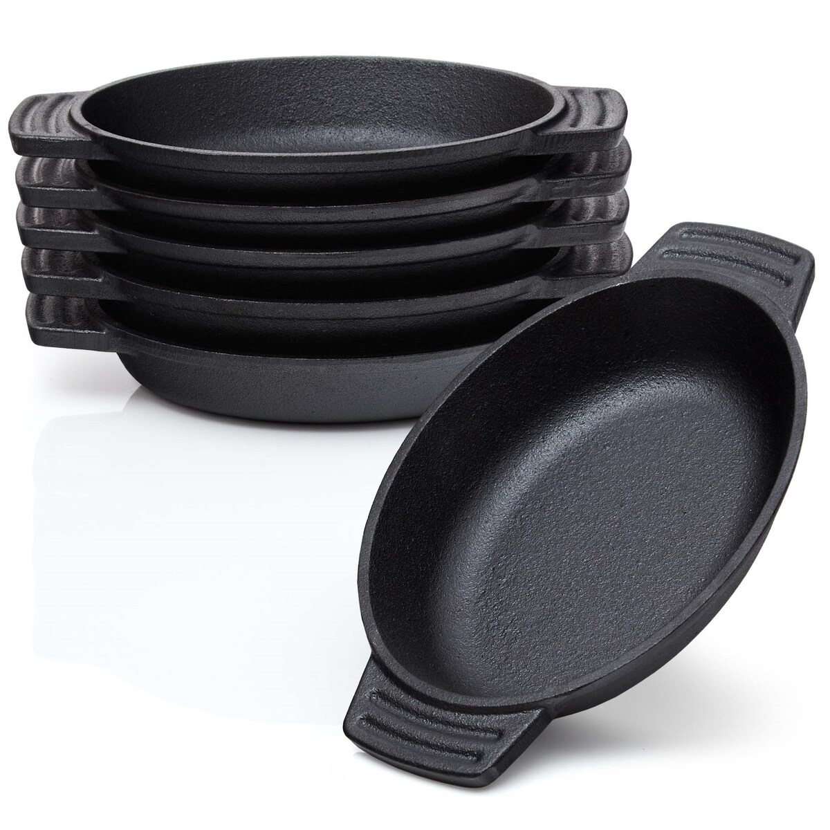 Servierpfännchen aus Gusseisen im 6er Set - Grillpfännchen - oval 22,5 x 13 cm - zum Braten, Überbacken, Grillen, Anrichten und Servieren - Guss...