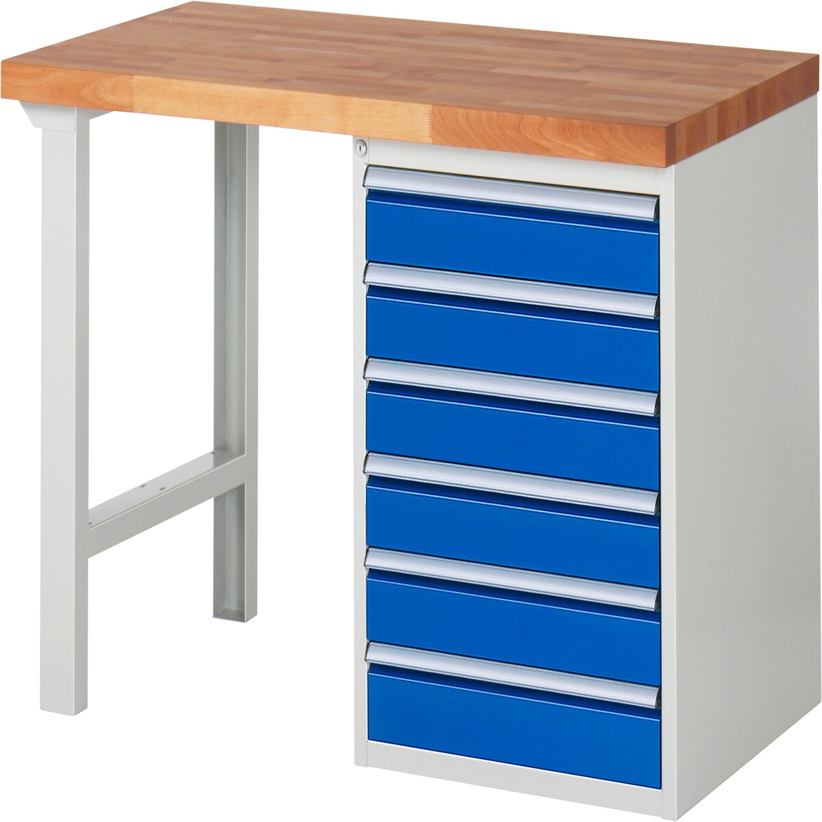 PROREGAL Werkbank Serie 7000 - Modell 7516 | HxBxT 89x125x70cm | 6x Schublade | Schubladenmaße 6x120mm | Lichtgrau | Arbeitstisch Werktisch