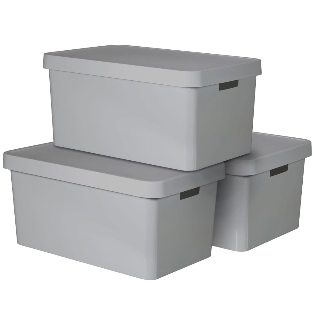CURVER Archivboxen INFINITY, 58 x 40 x 43 cm, 45L, mit Deckel, hellgrau, 3 Stück