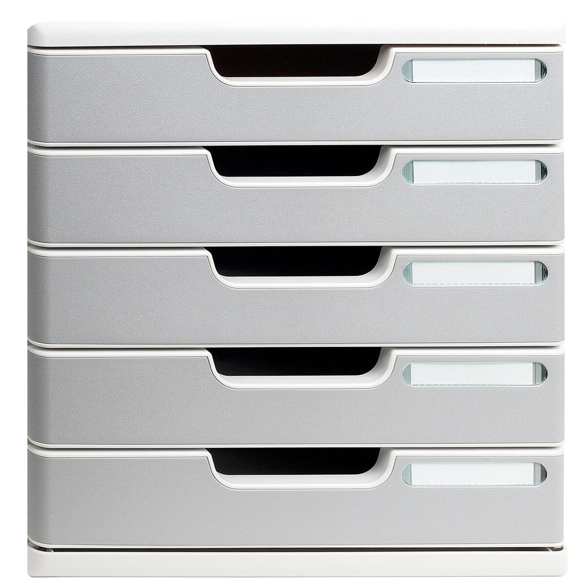 Exacompta Archivboxen mit 5 Schubladen, 32x35x29 cm, lichtgrau, 8 Stück