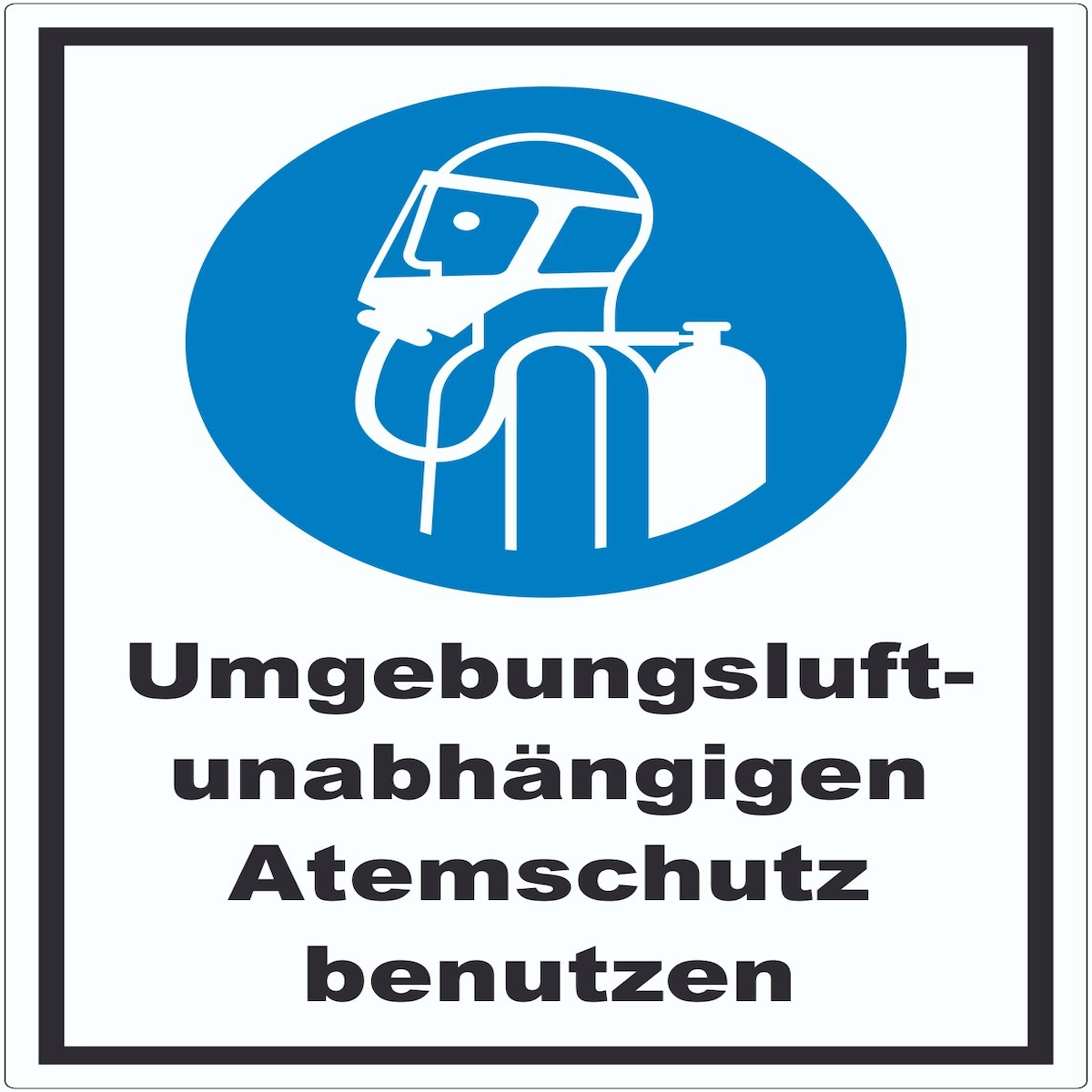Umgebungsluftunabhängigen Atemschutz benutzen Schild A5 Rückseite selbstklebend