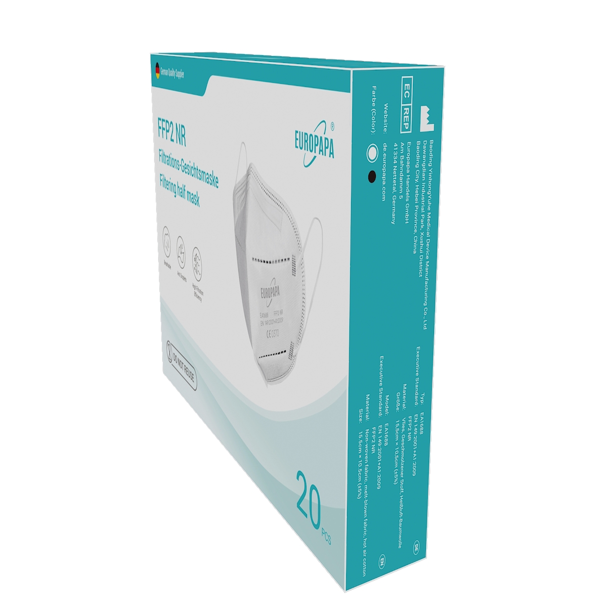 EUROPAPA 20x FFP2 Weiss Atemschutzmaske 5-Lagen Staubschutzmasken einzeln Verpackt