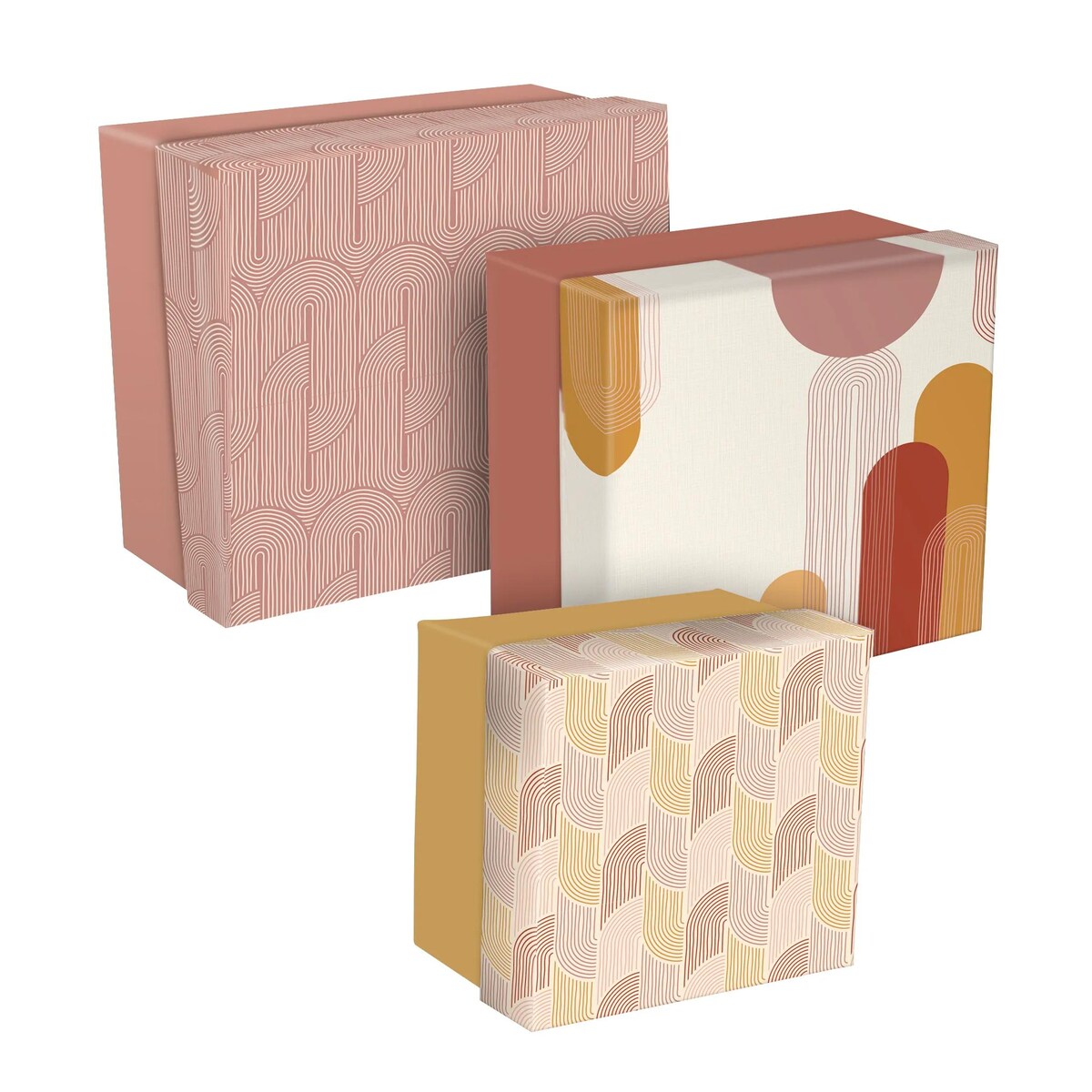 Clairefontaine 2x Terracotta, Set mit 3 quadratischen Aufbewahrungsboxen 25x25x12 cm, 20x20x11cm und 16x16x10 cm - 116080C