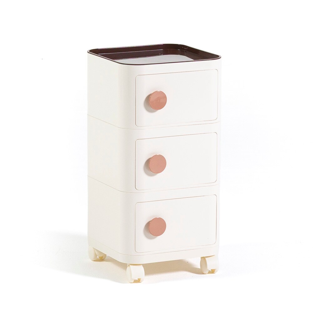 RATTATAN Aufbewahrungsmöbel mit 3 Fächern und Rollen aus ABS, modernes Möbel mit Magnettüren für Wohnzimmer, Schlafzimmer und Büro – EDEN – Creme