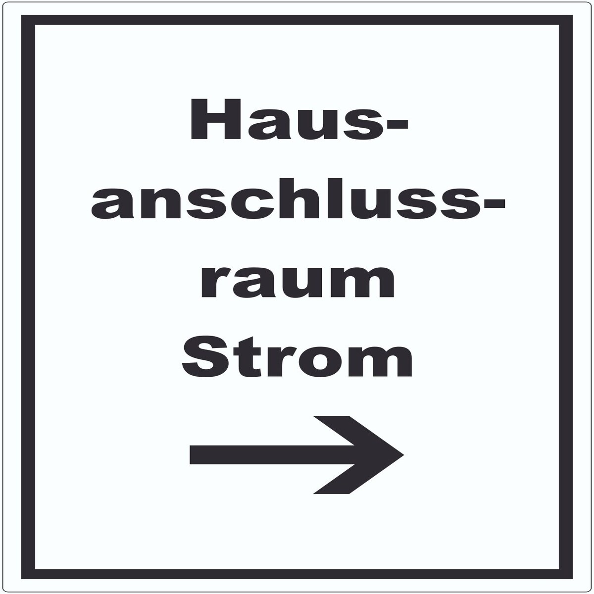 HB-Druck Hausanschlussraum Strom Aufkleber mit Text und Richtungspfeil rechts HAR hochkant A2 (420x594mm)