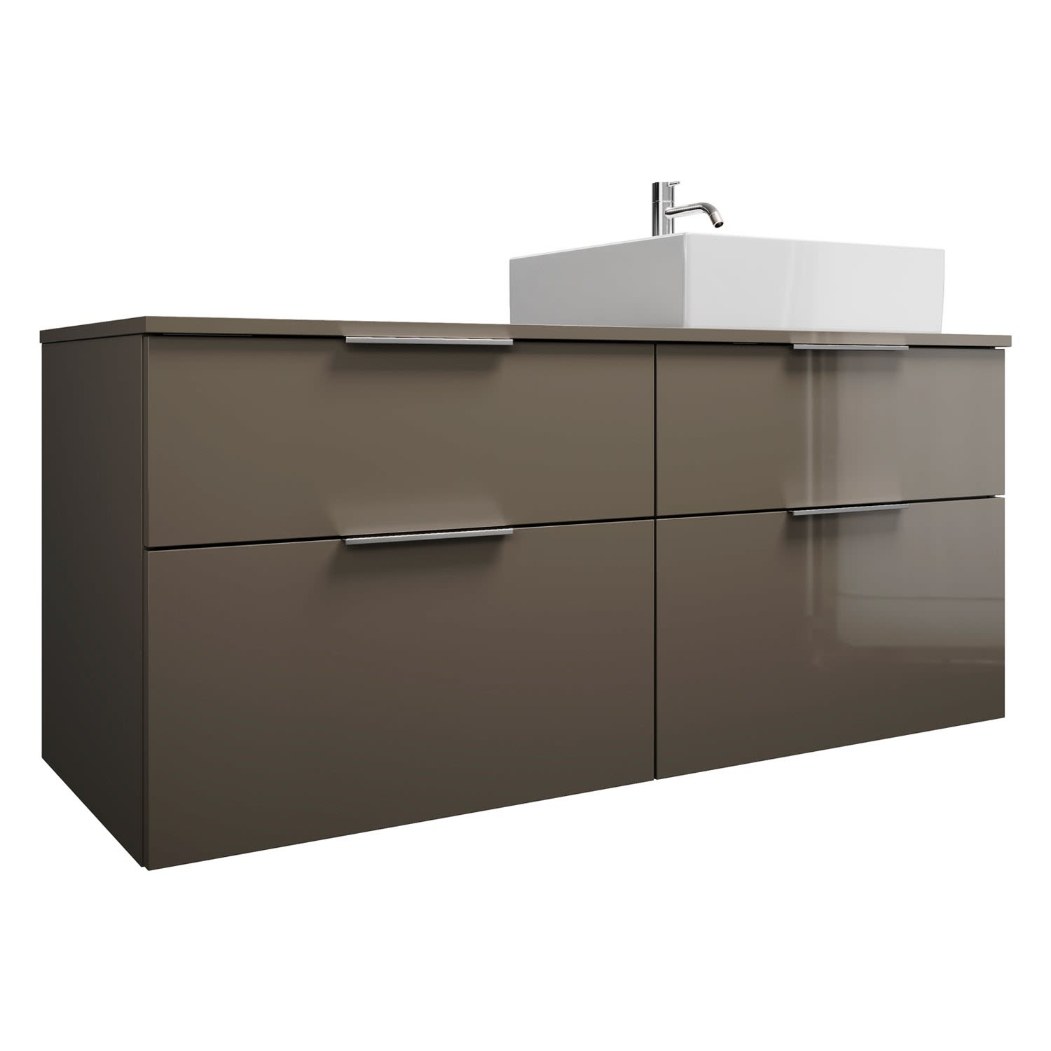 burgbad Eqio Waschtischkombination mit Keramik-Aufsatzwaschtisch 140 cm, rechts, mit Griffleiste G0251, Badmöbel,